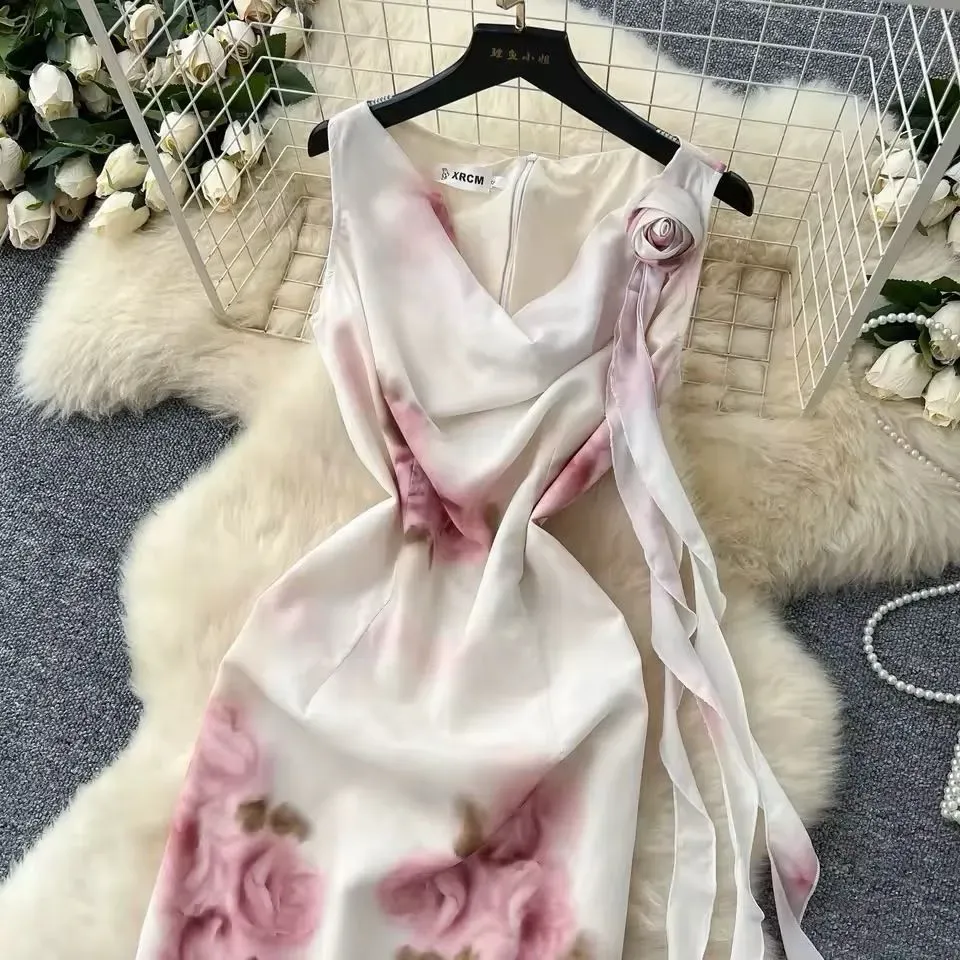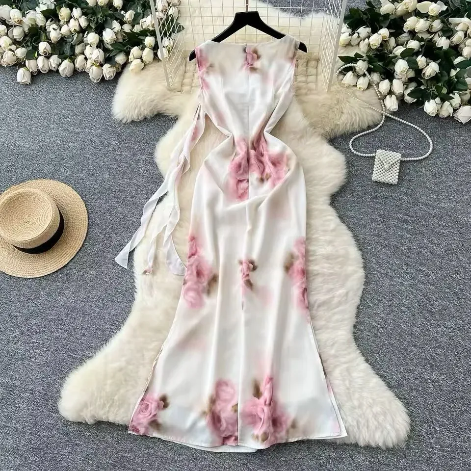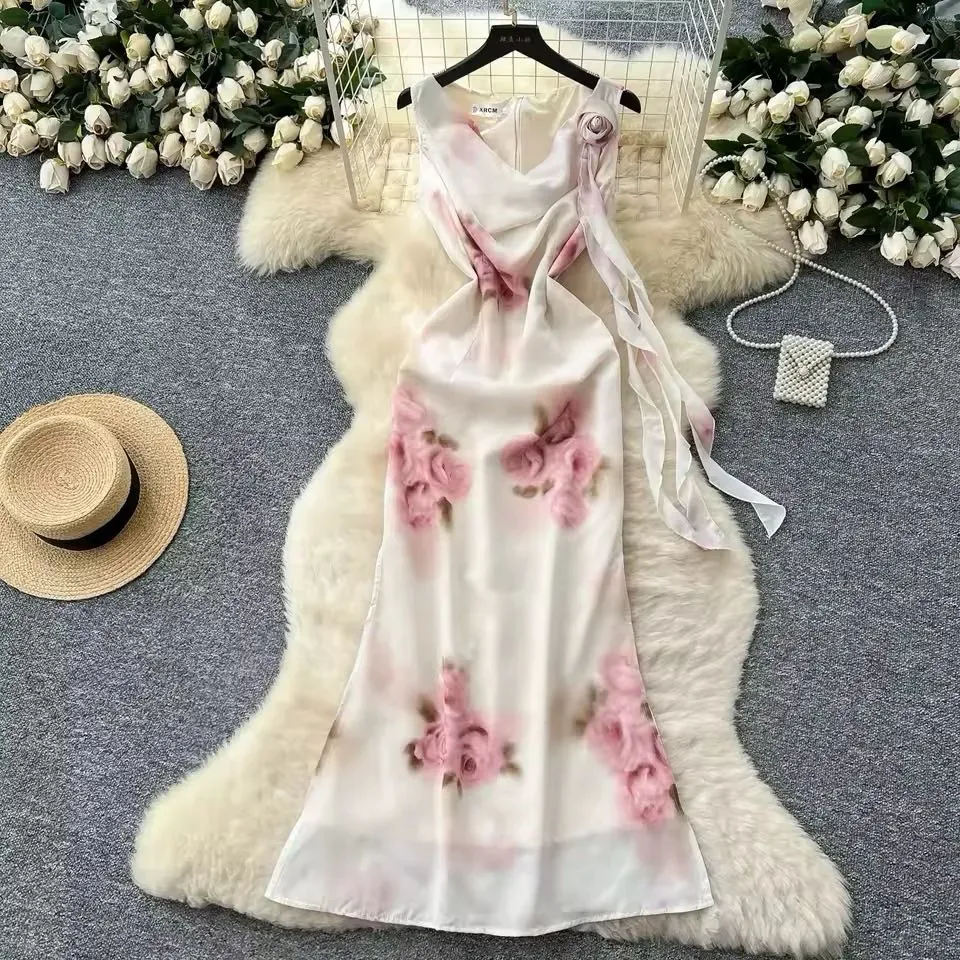 Vestido femenino, vestido, ligero, con estampado de rosas