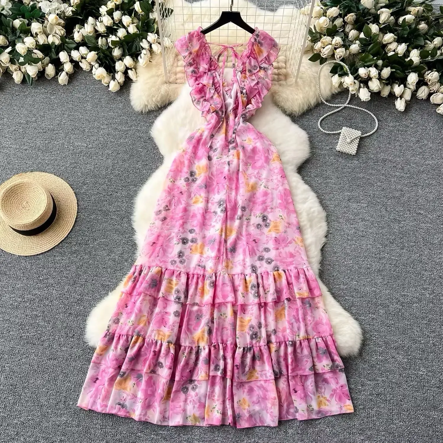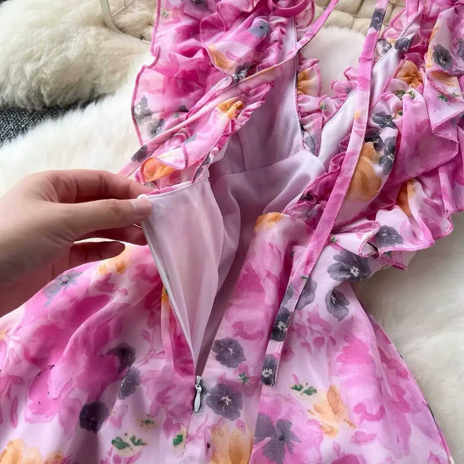 Vestido Floral Rosa de Moda Colombiana