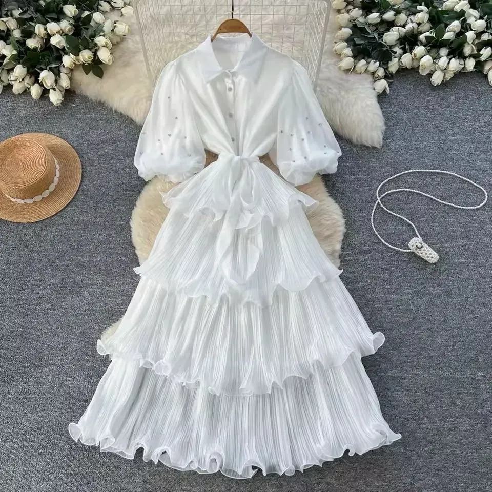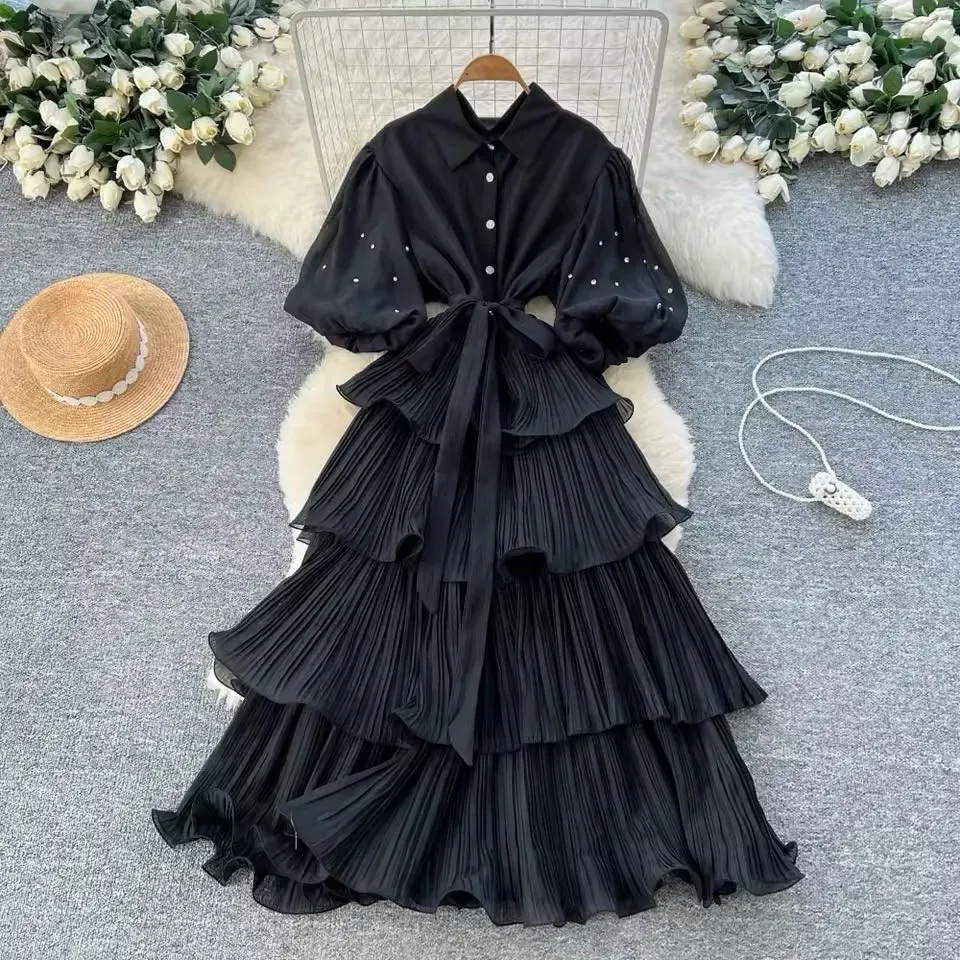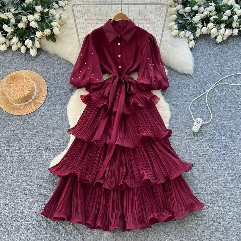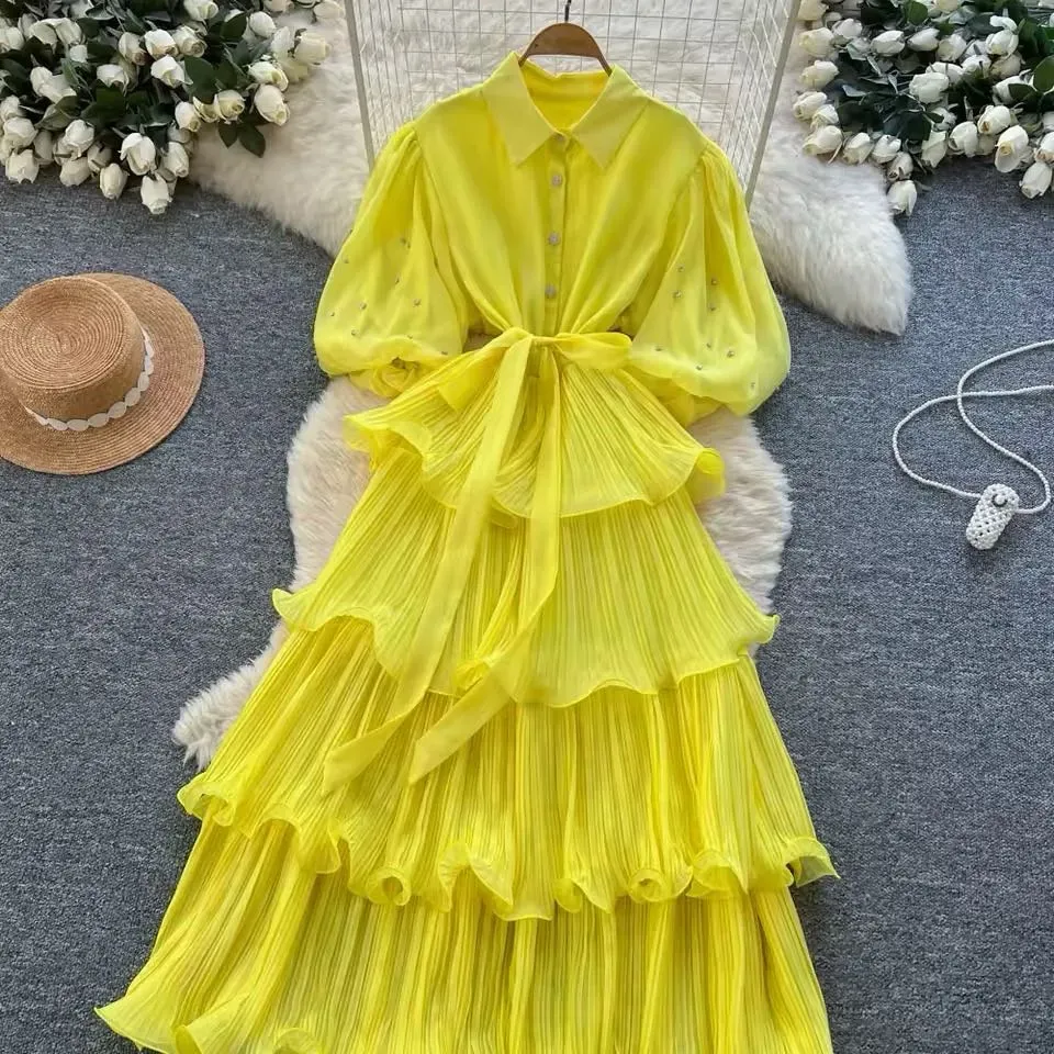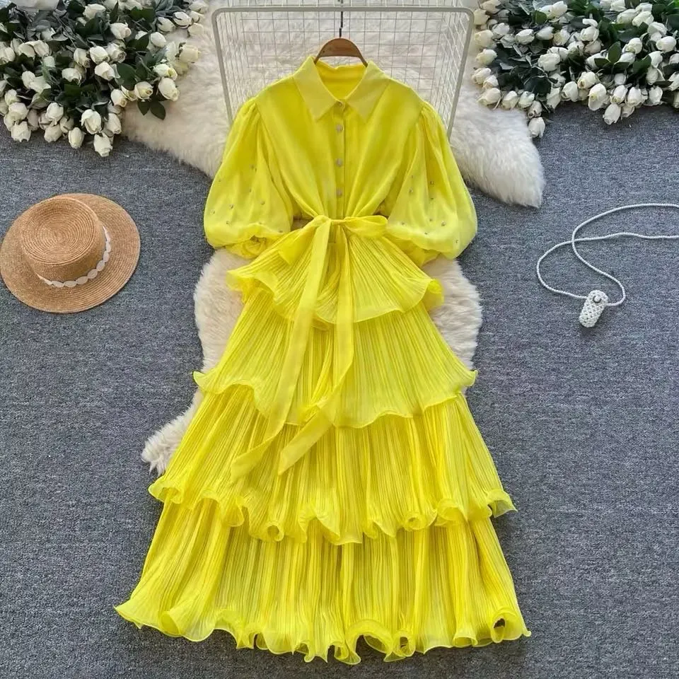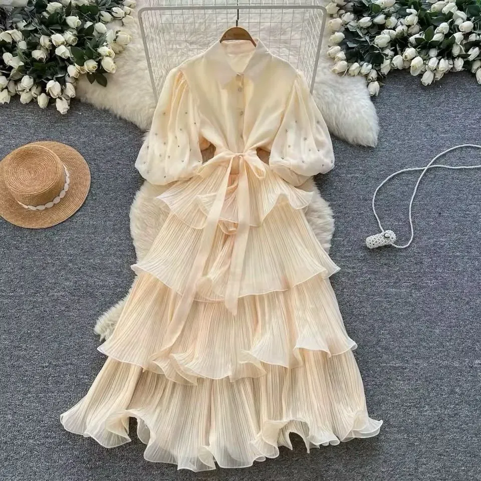 Vestido de gala en tres tiempos en diferentes tonos con una caída perfecta