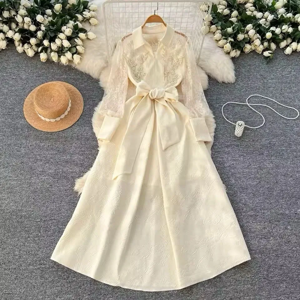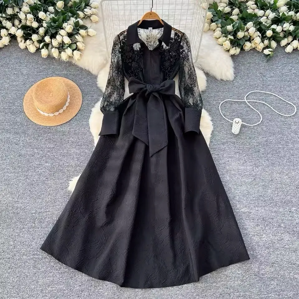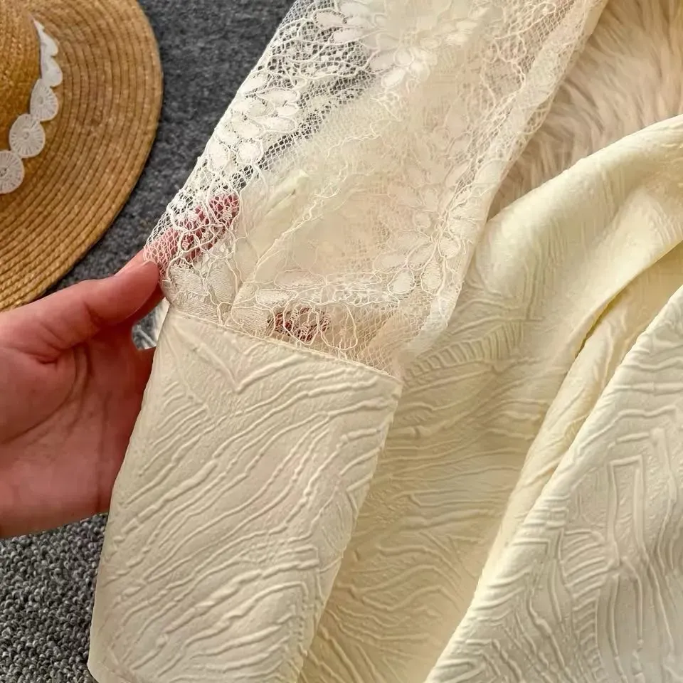 Vestido de gala con encaje en las manos, dando unas sensación parisina