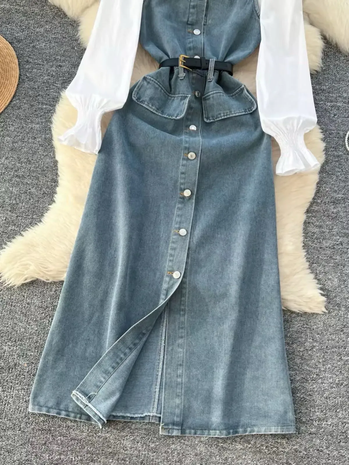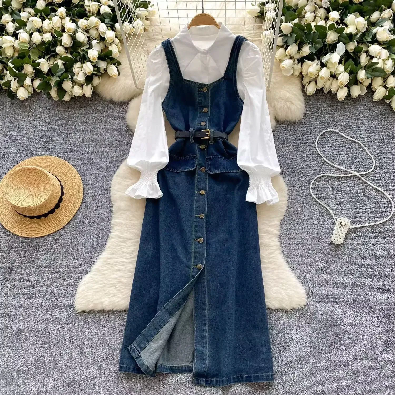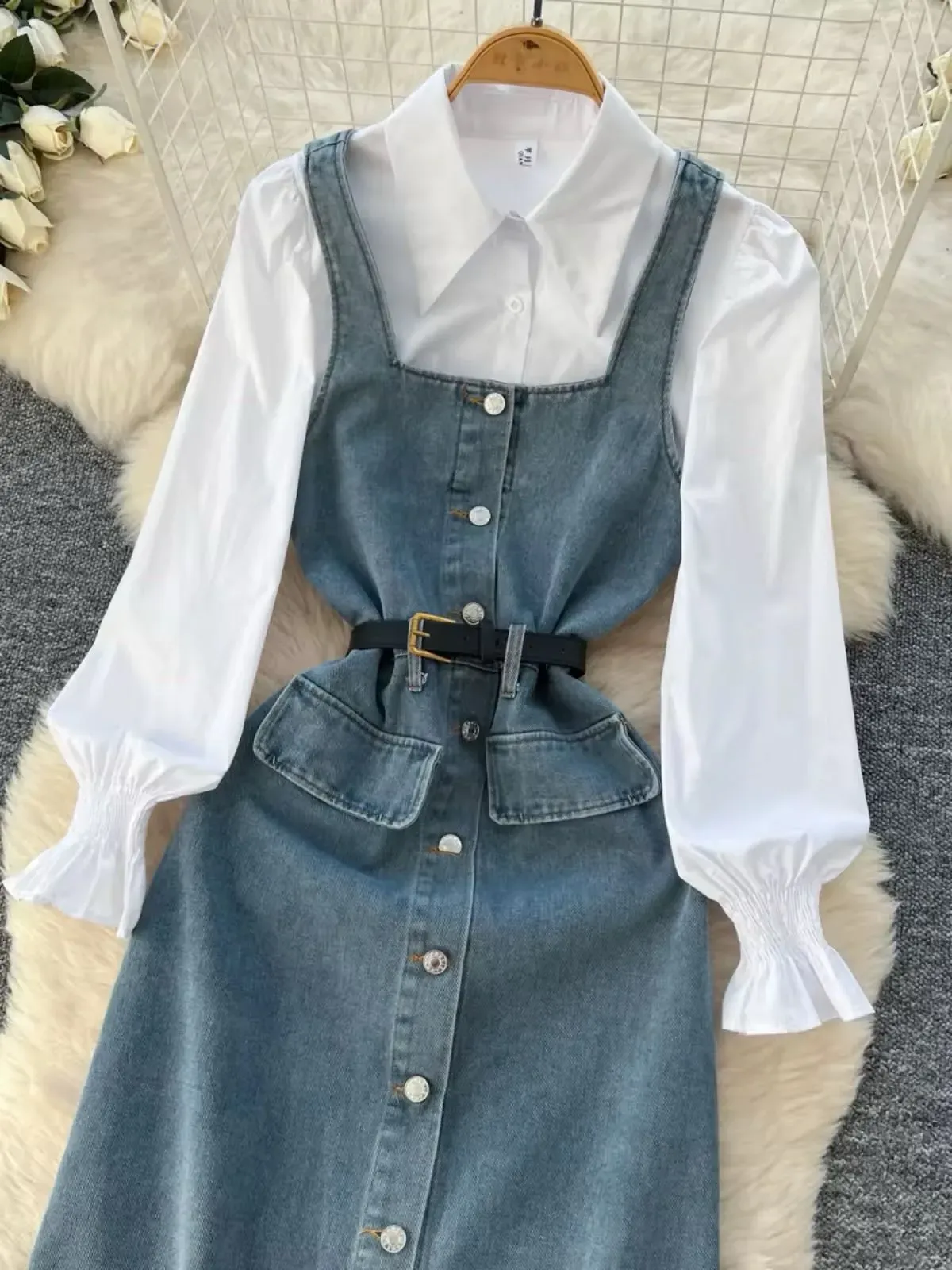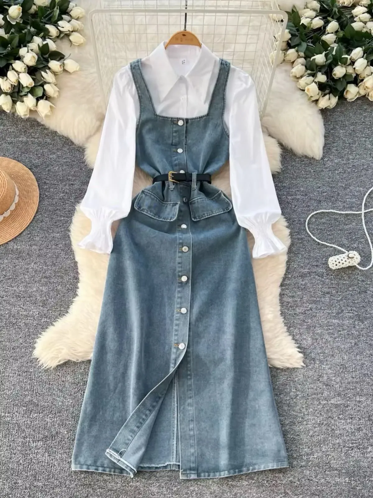 Vestido de Mezclilla con Camisa Blanca