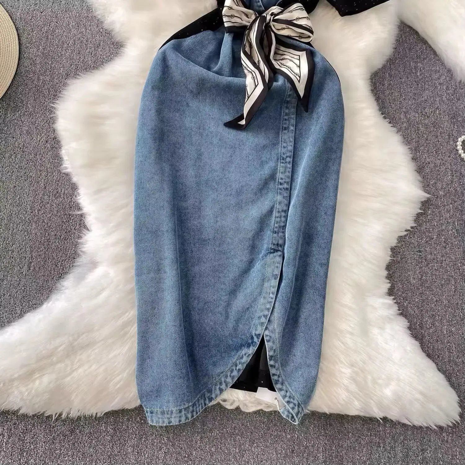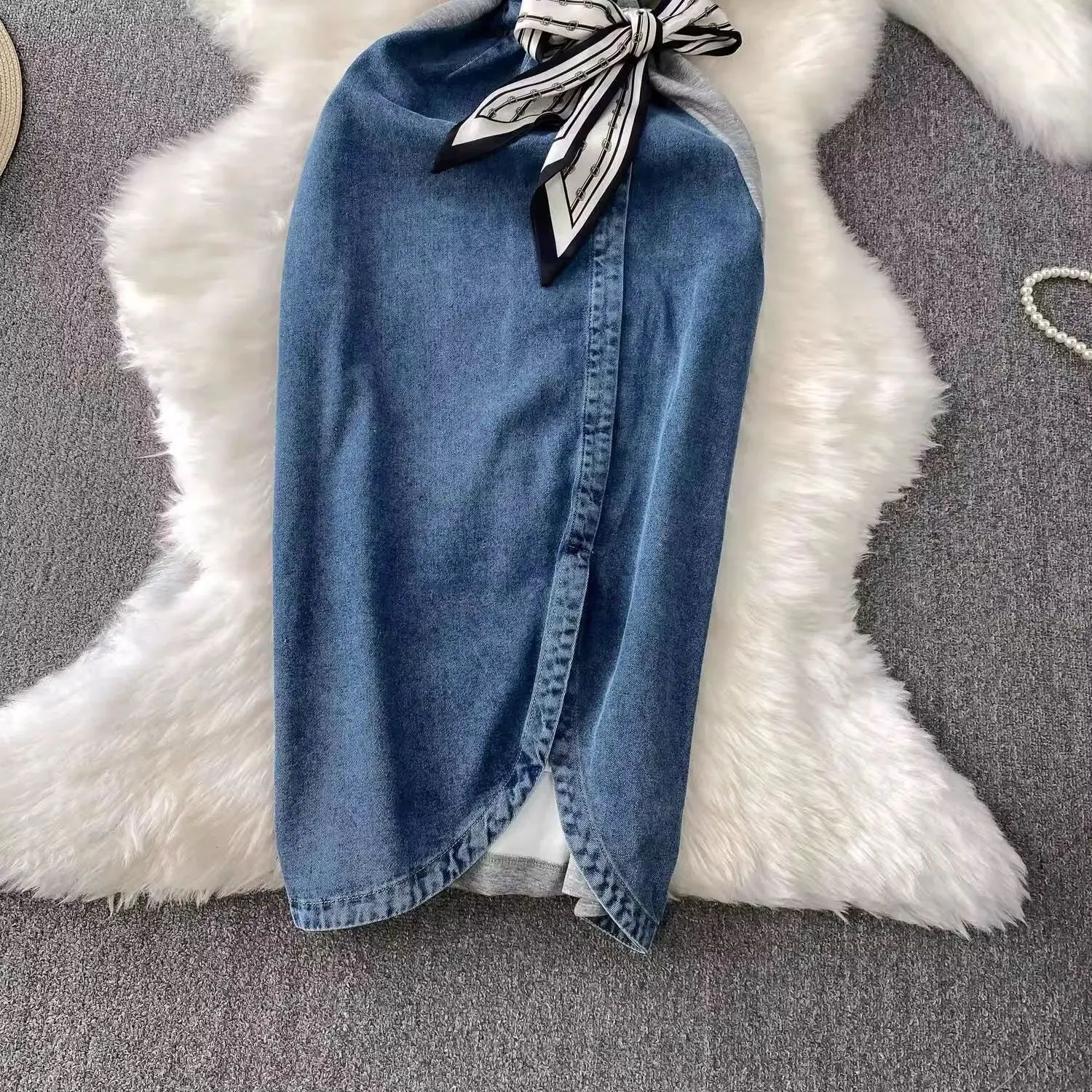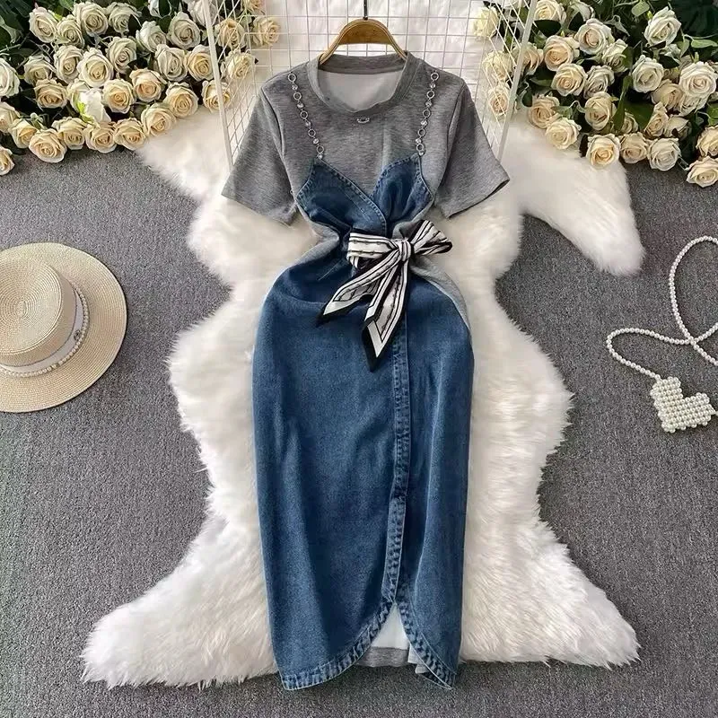 Vestido de Mezclilla con Pañuelo en la Cintura