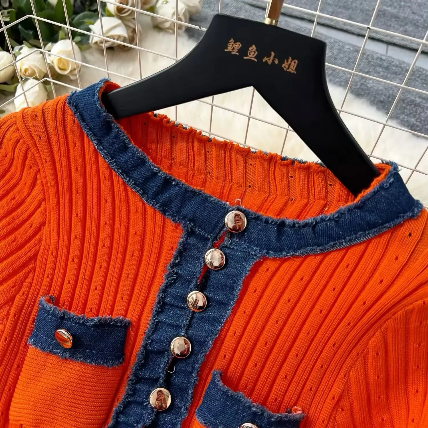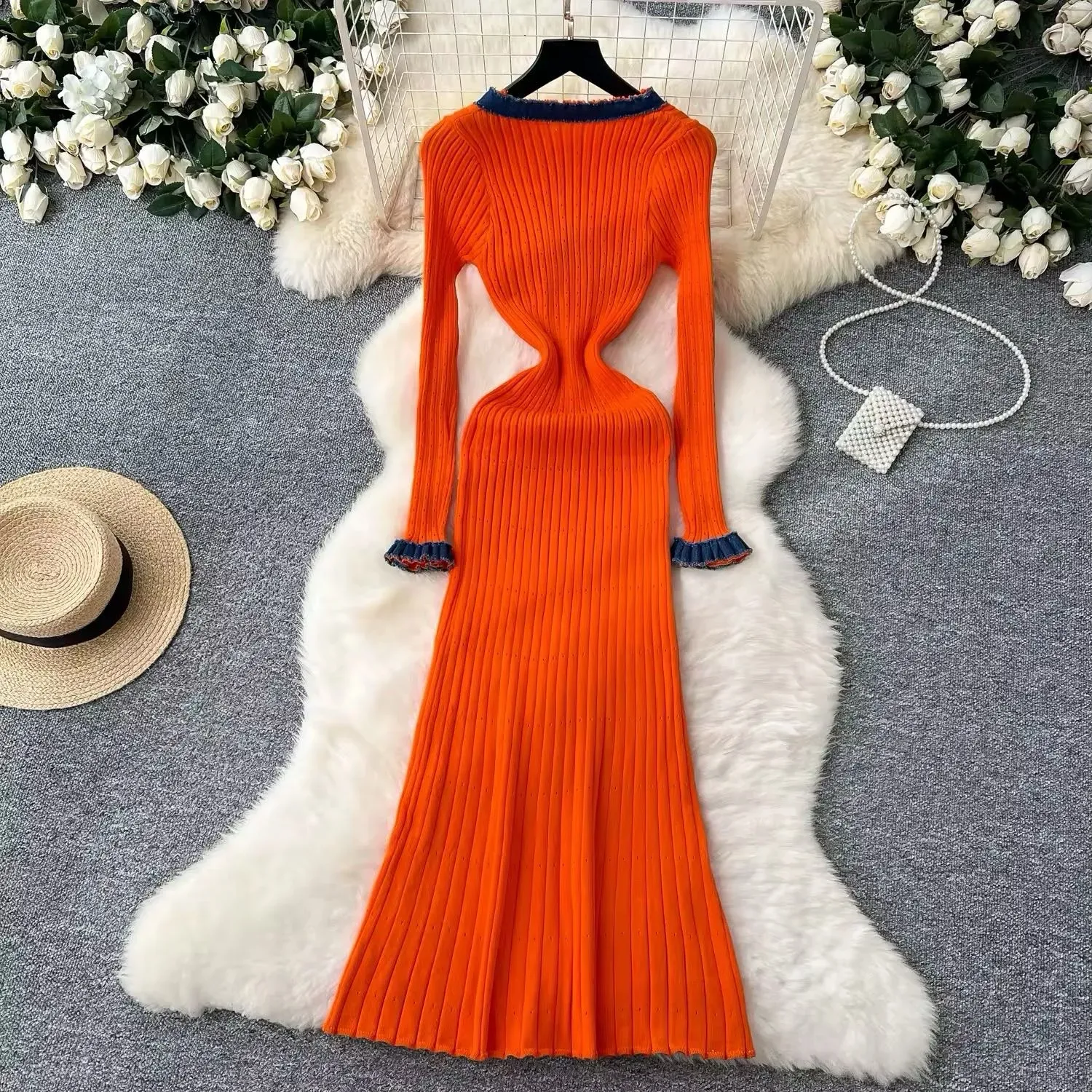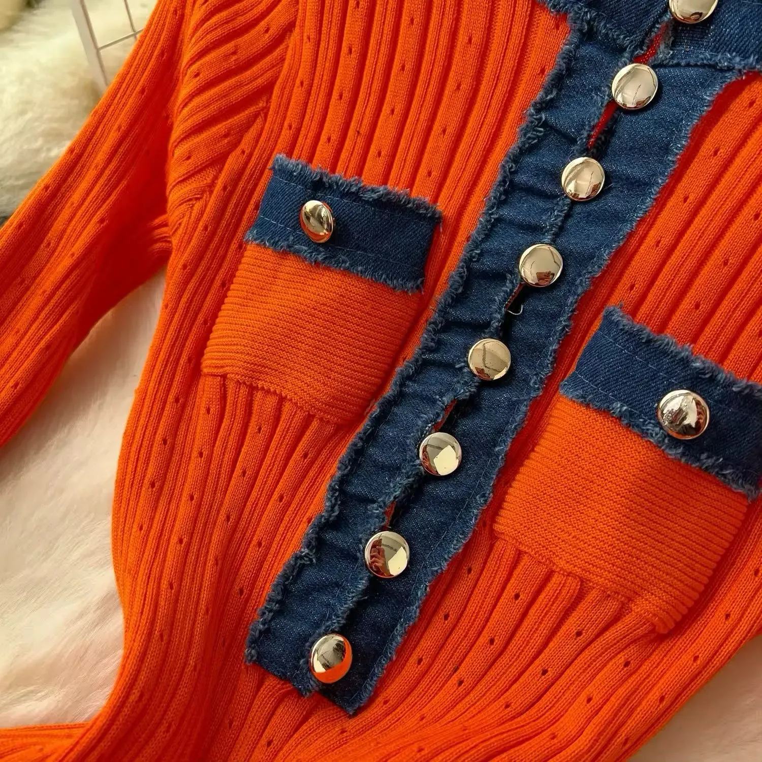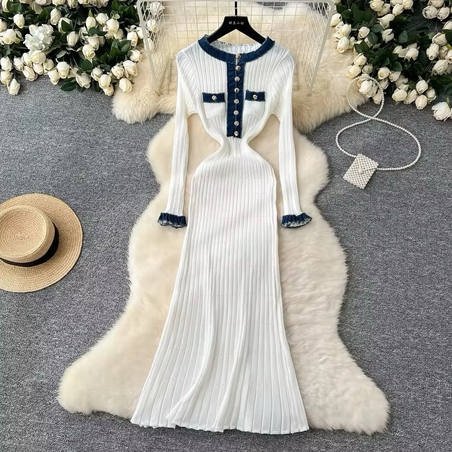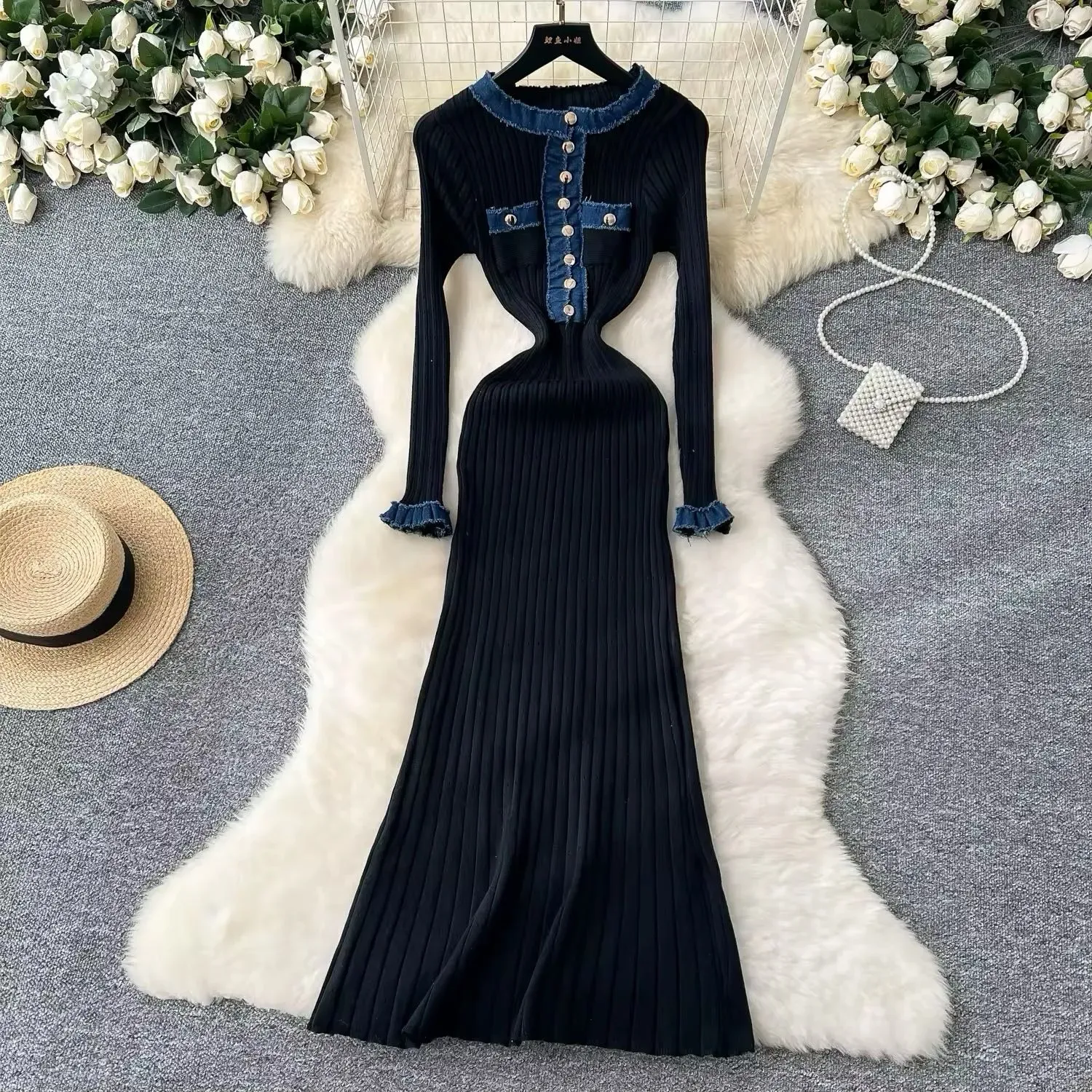 Vestido de punto con Detalles en Demin largo, elaborado para momentos cómodos